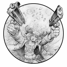 Fearless Dawn: Two Guns by Steve Mannion 5" Round Die Cut Vinyl Sticker | Sticker-Vinyl | Steve Mannion,Frank Forte |