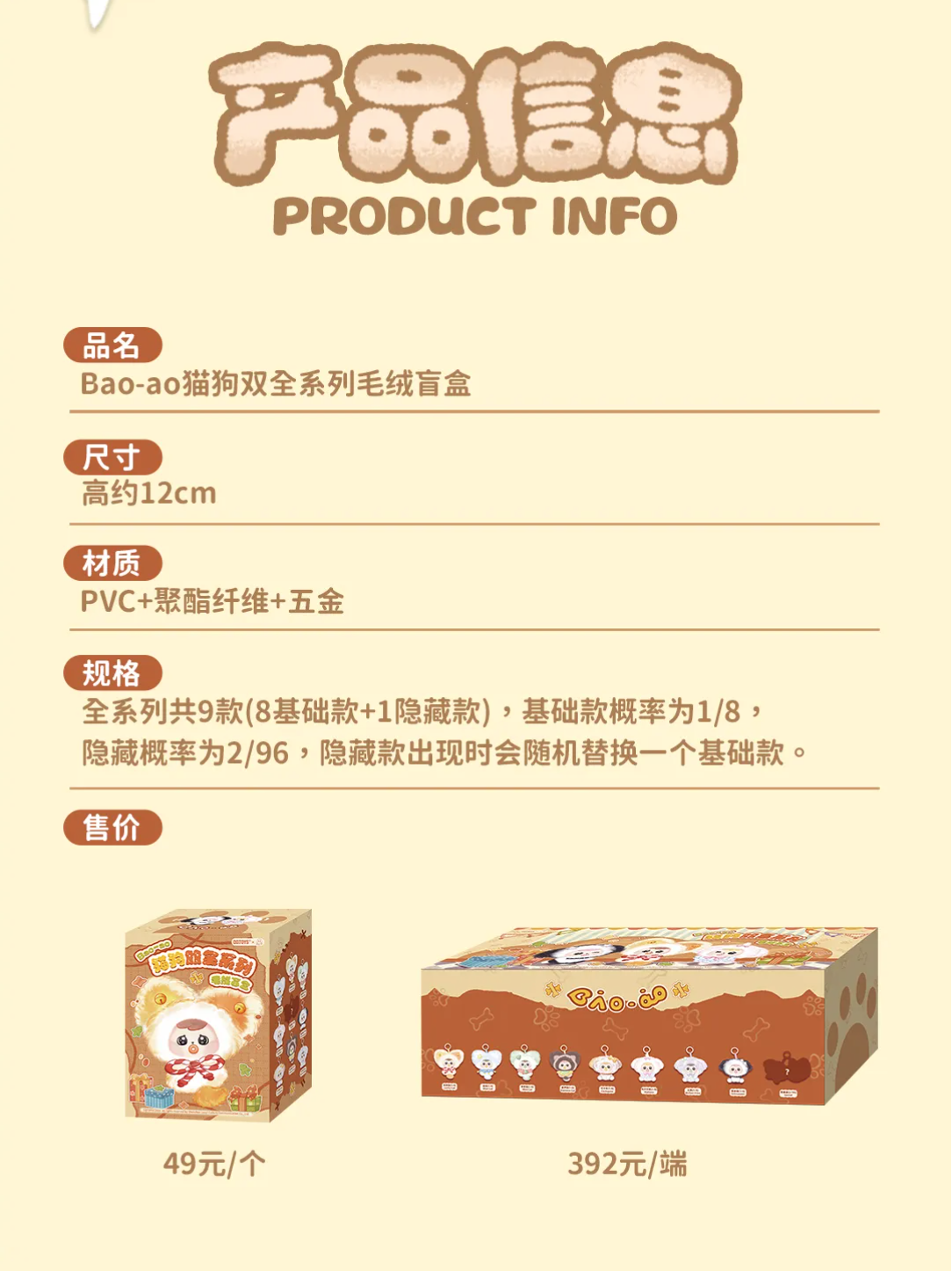 Bao-ao Dogs and Cats Vinyl Plush Pendant Blind Box