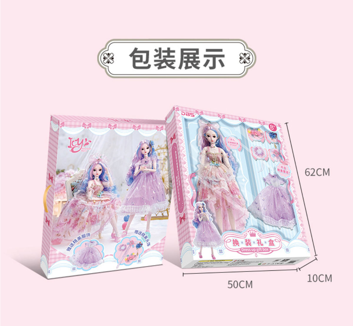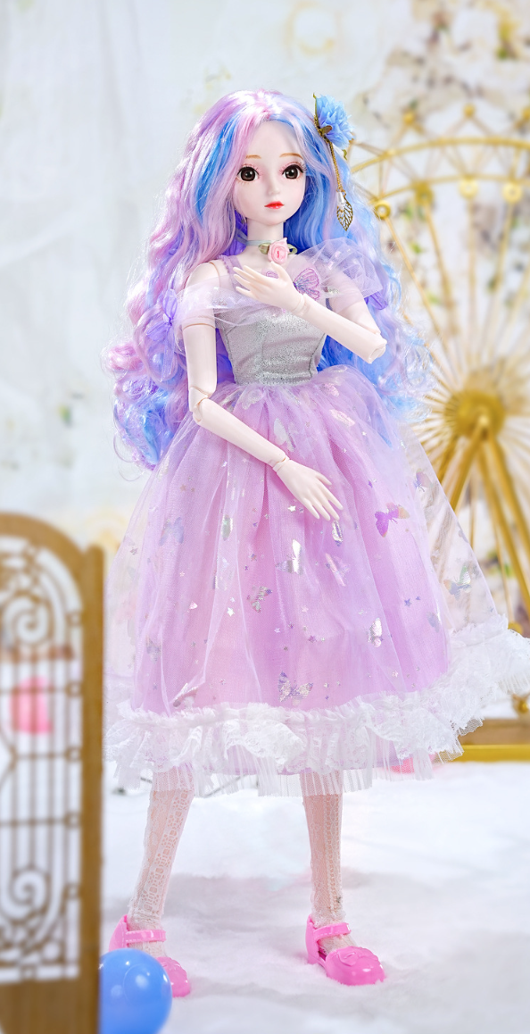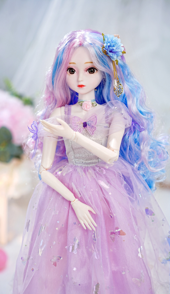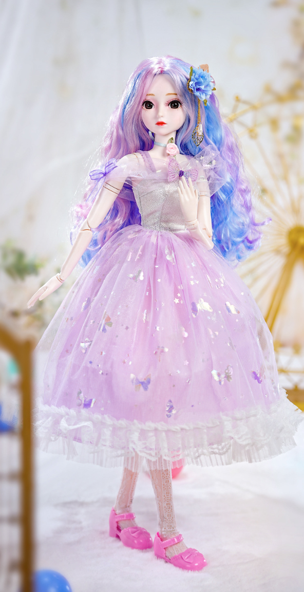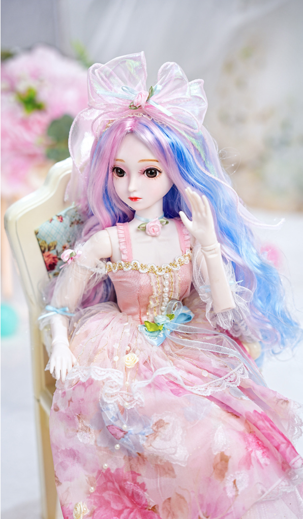 The doll's exquisite facial makeup is hand-painted, and its beautiful headdress is breathtaking. The dress features intricate details, is handcrafted, and boasts exquisite carvings, exuding elegance and nobility. Comes with 2 outifts.