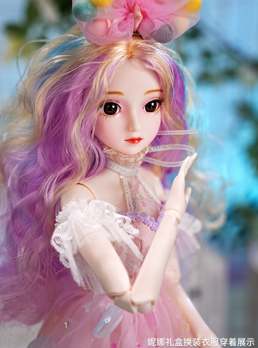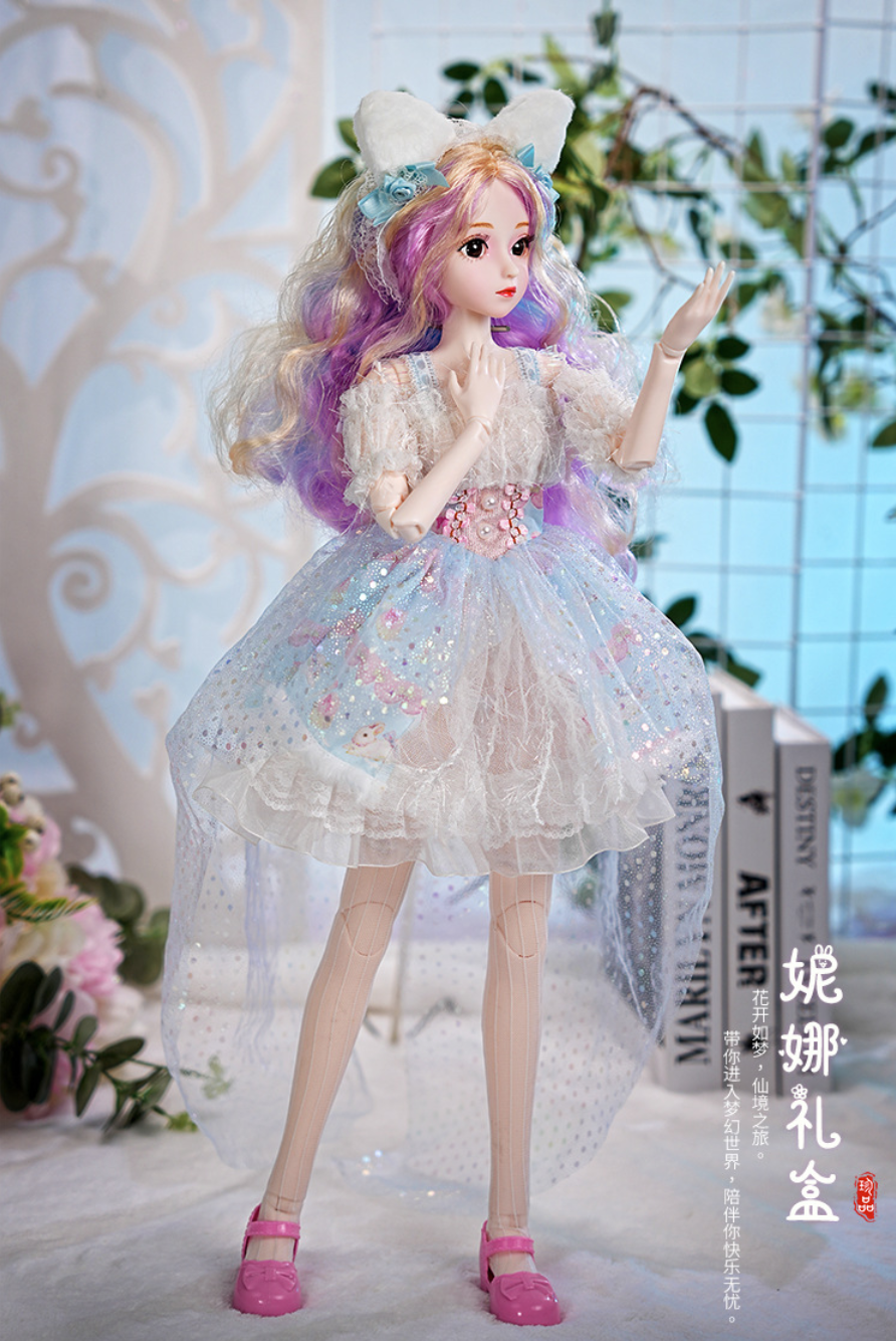 3D eyes and eyelashes, sparkling and lively; exquisite clothing; DIY fun; realistic, thick hair; full and voluminous hair; clothing and accessories to match and freely change. Standard configuration includes a 34-joint, 360-degree articulated body. Comes with 2 outfits, 23.62 inch.