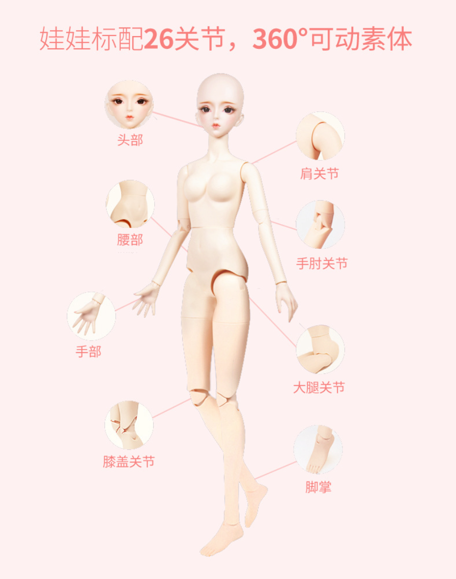 Standard features include a 34-joint, 360-degree articulated body. 3D eyes with realistic eyelashes, bright and lively gaze; exquisite handmade clothing, meticulously sewn by artisans; delicate hairstyles and headwear, with detachable and replaceable headwear. Includes 1 outfit, 23.62 inch.