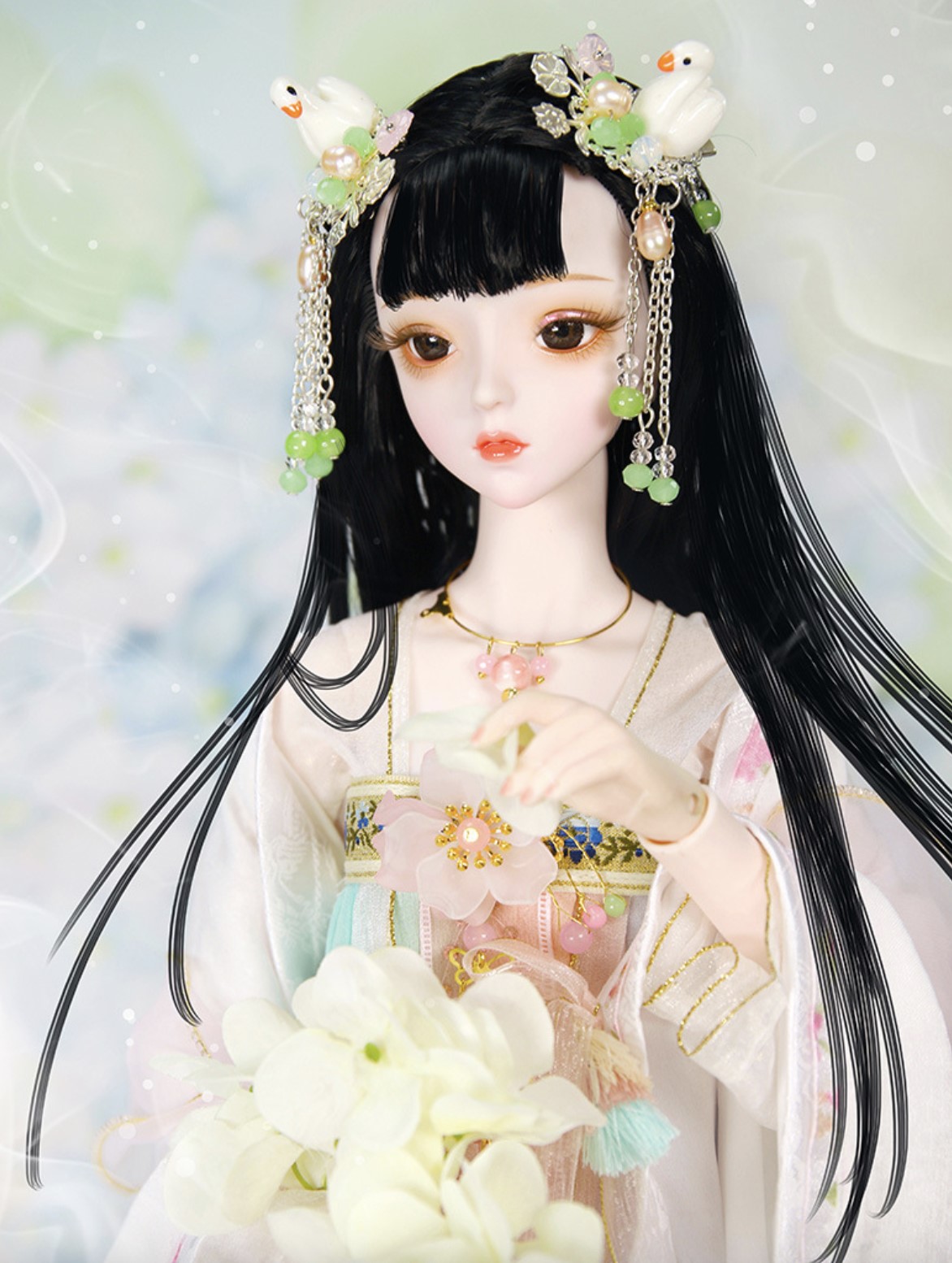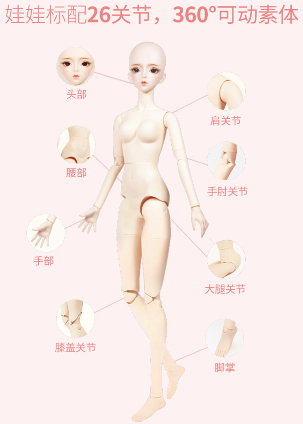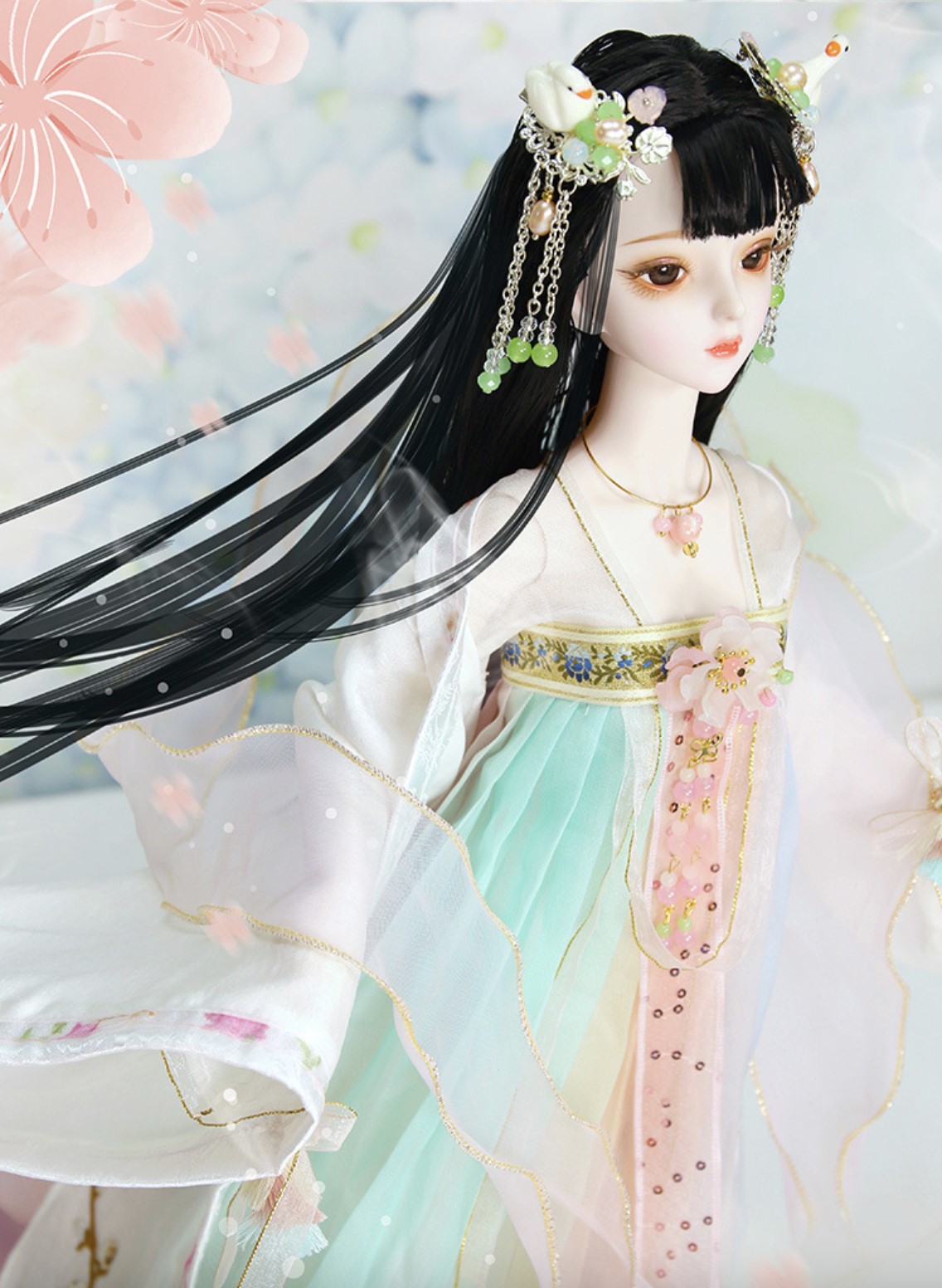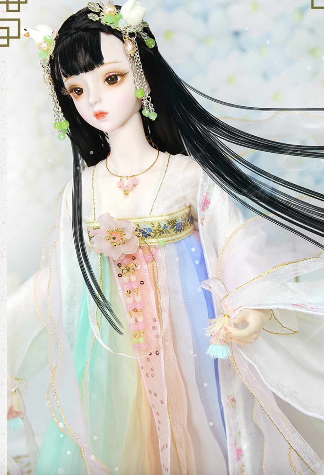 Standard features include a 34-joint, 360-degree articulated body. 3D eyes with realistic eyelashes, bright and lively gaze; exquisite handmade clothing, meticulously sewn by artisans; delicate hairstyles and headwear, with detachable and replaceable headwear. Includes 1 outfit, 23.62 inch.