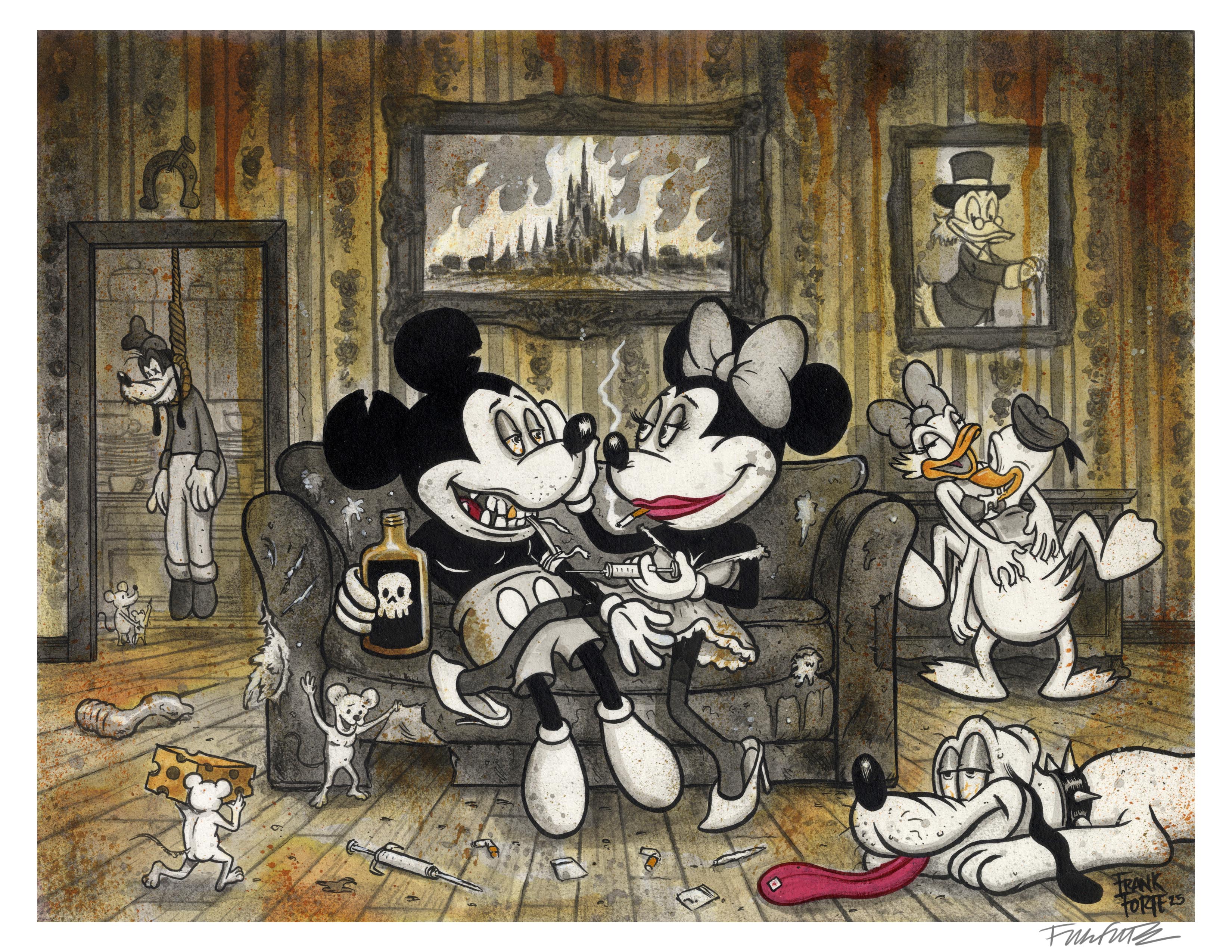 This 8.5x11 Fine Art print signed by Frank Forte. Comes Bagged and Boarded. Frank Forte is an accomplished designer, storyboard artist and comic book artist. Frank’s film and TV credits include:Lovecraft Country, Fantasy Island, Solar Opposites, Dreamwork’s 3Below, Bob’s Burgers, Insidious 4, Lego: Guardians of the Galaxy, Despicable Me 2 & Lego Star Wars: The Empire Strikes Out. In Frank’s spare time he paints. Influenced by classic cartoons and comic books, Frank’s paintings are an assemblage of inspiration from what he grew up watching on TV and reading in comic books. Trying to capture the feeling and emotion of a moving cartoon on a flat canvas, Frank’s work incorporates horrific and twisted subjects in disturbingly bizarre situations. His work has been exhibited at the La Luz De Jesus Gallery, Copro Gallery, Corey Helford Gallery, CASS Contemporary, Dark Art Emporium, Arch Enemy Arts, Phone Booth Gallery, Night Gallery Fine Arts, Cannibal Flower, LTD. Gallery and Hyaena Gallery.