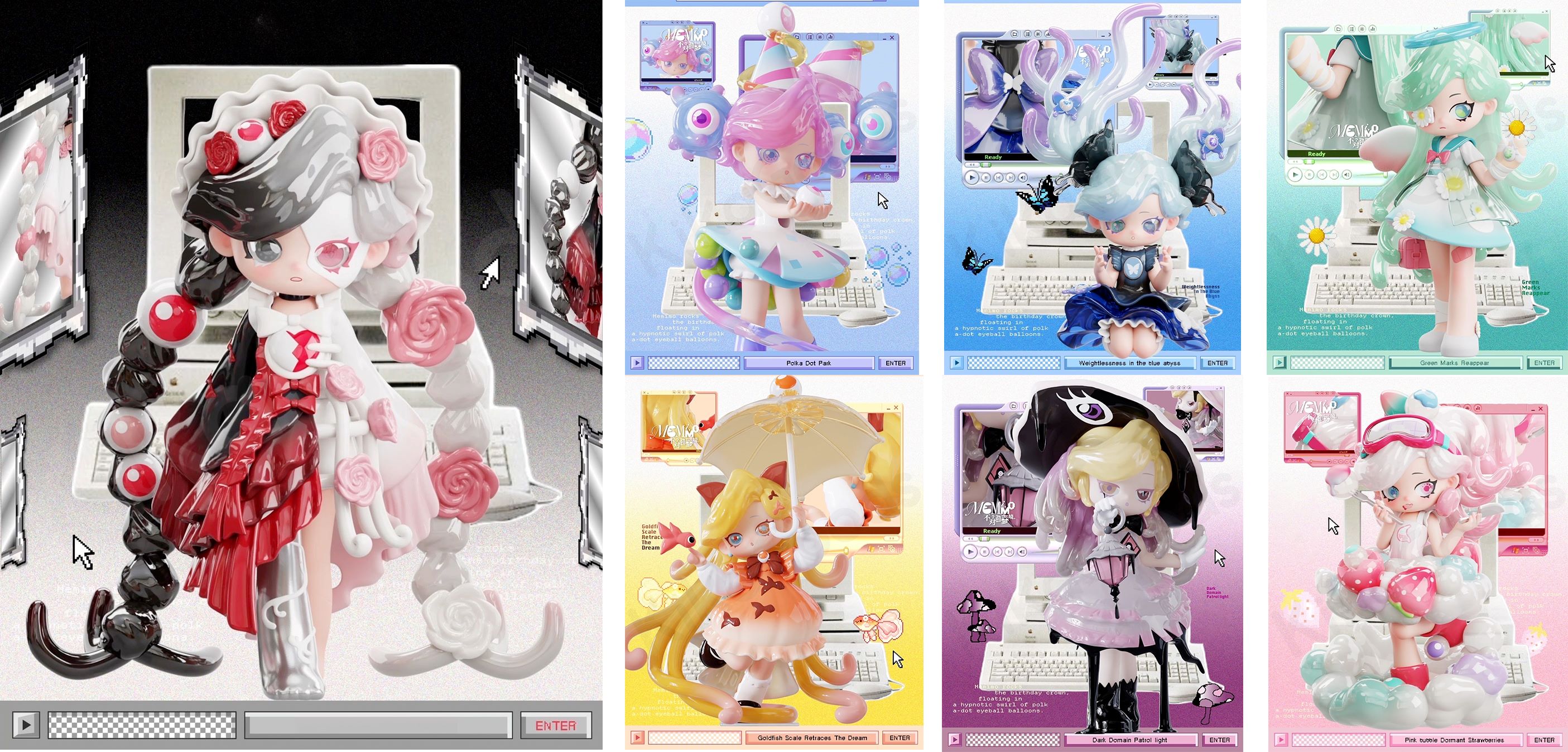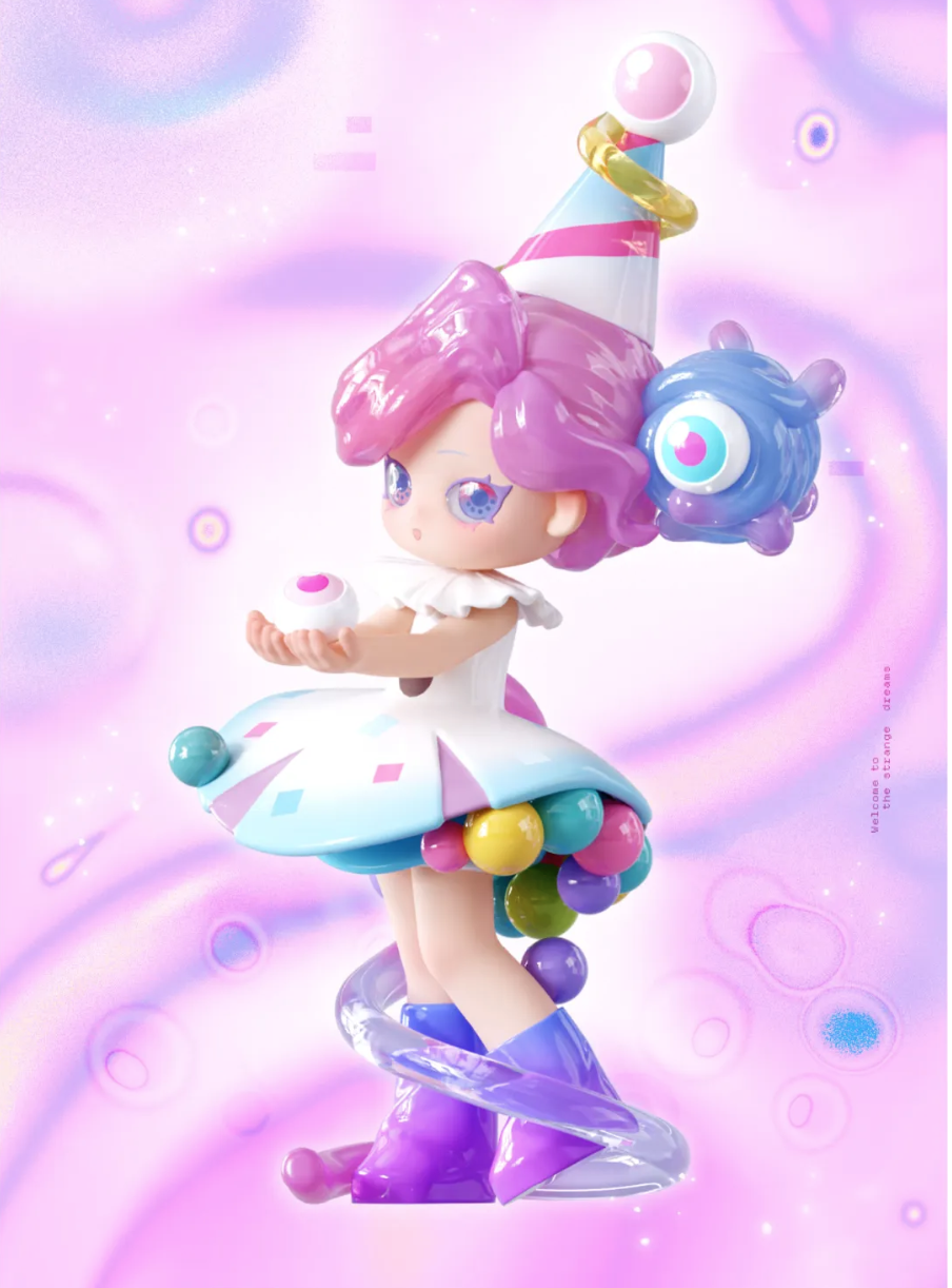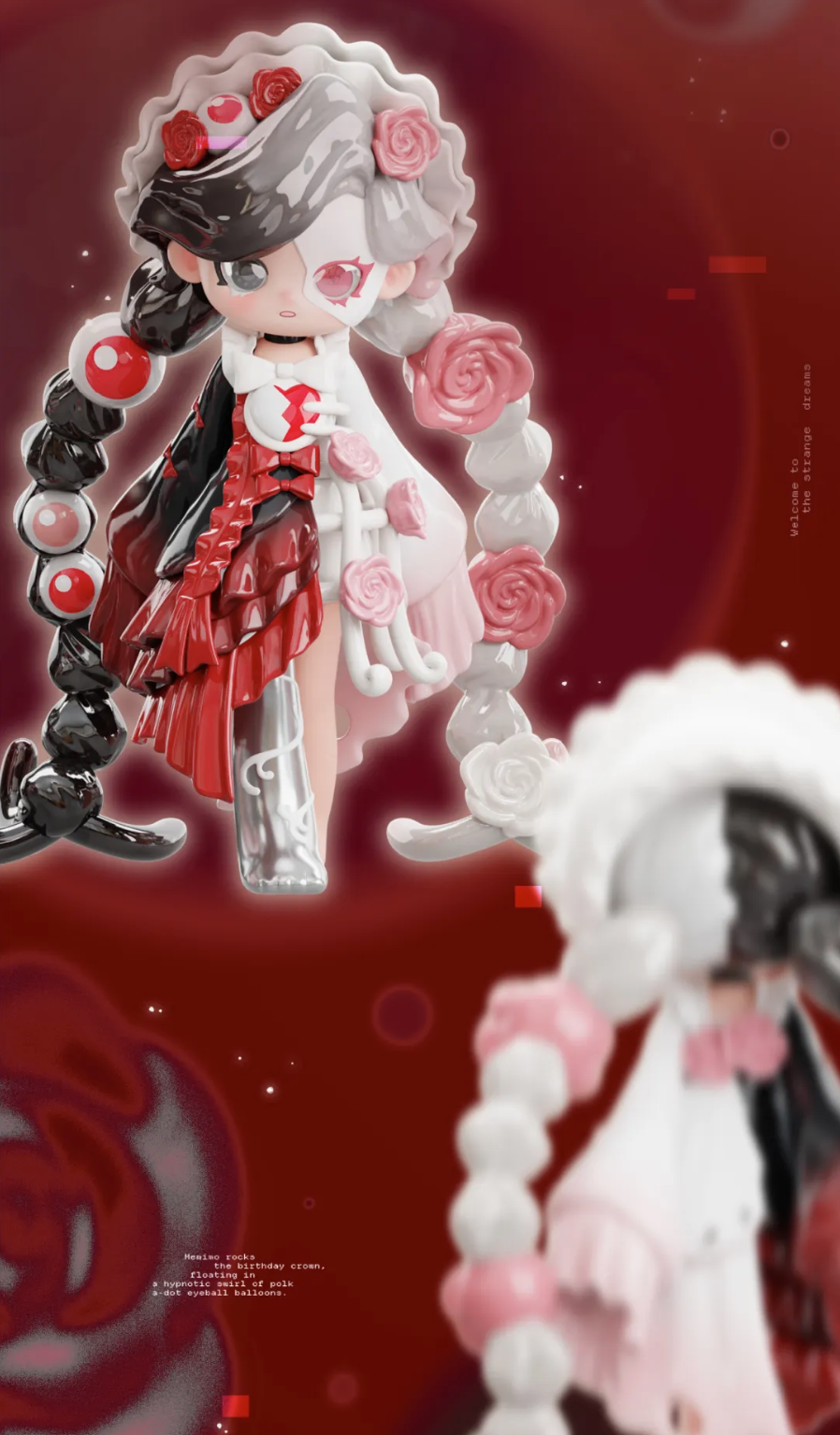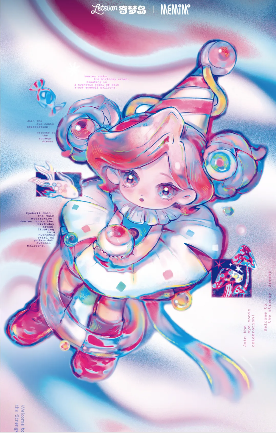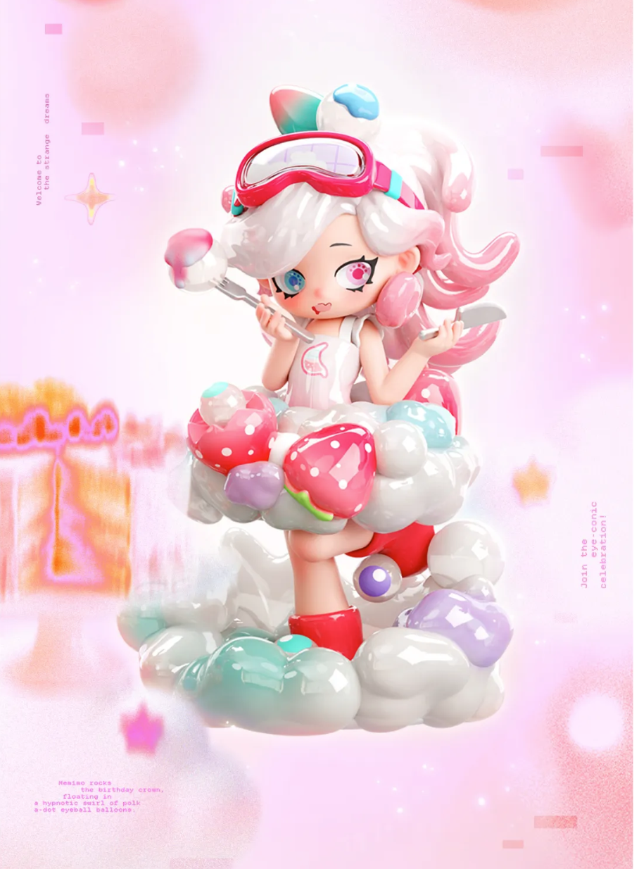 When fluorescent mushrooms begin to whisper, goldfish swim in the clouds, and the eyeball pudding embedded in the strawberry cake blinks gently, everything becomes wrong...Follow Memimo's footsteps and enter this upside-down dream carnival together. 5.9 inch