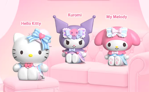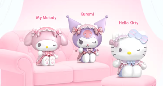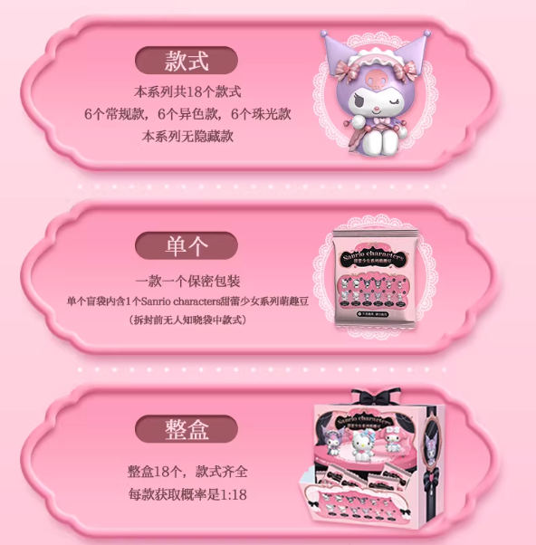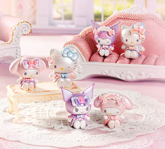 Sanrio's stars, dressed in Lolita fashion, gather at a sisterhood tea party surrounded by flowers, softly sharing elegant sentiments and leisurely enjoying the beautiful moments. 1.18 inch