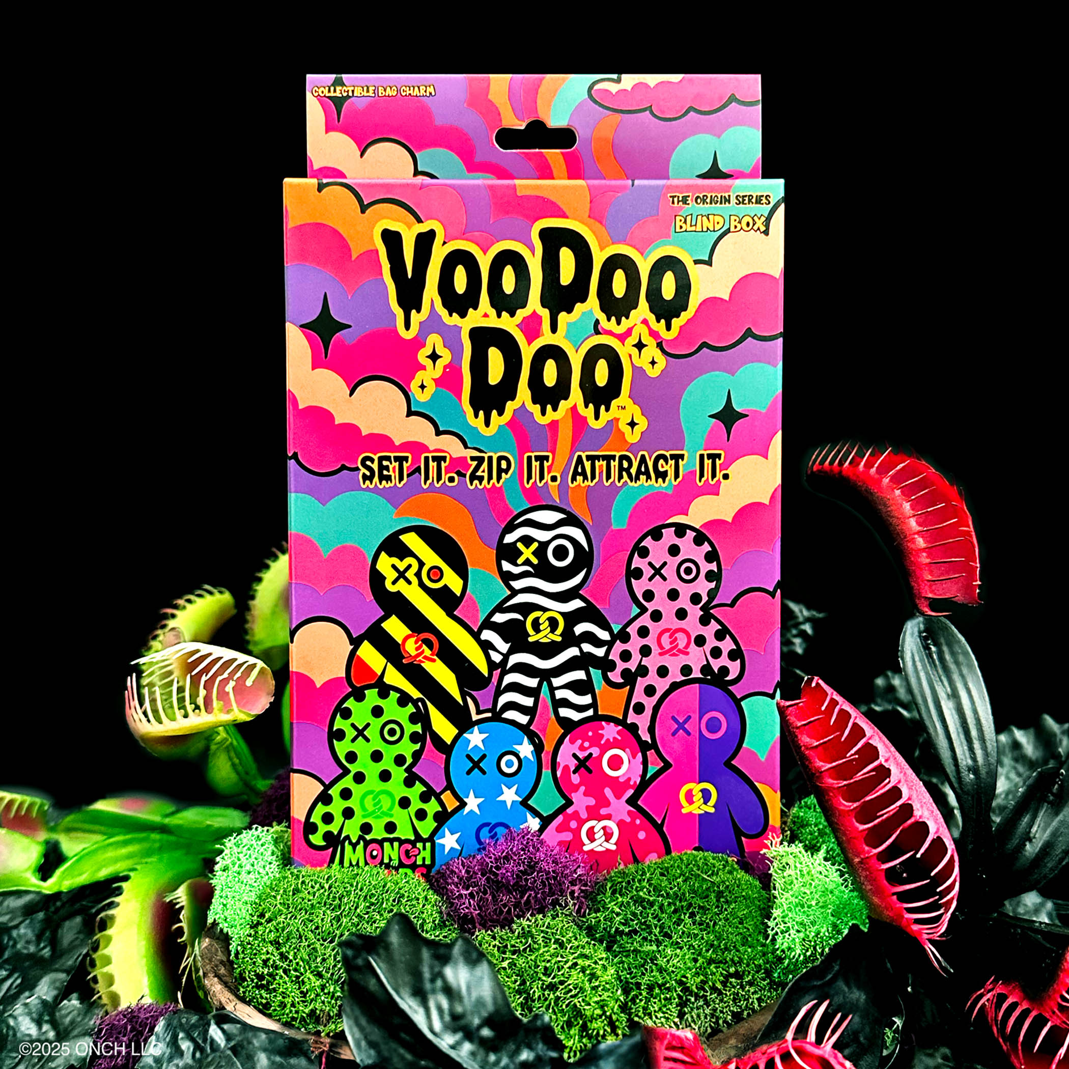 blind box collectible bag charms that merge manifestation with contemporary design and interactive storytelling. Each Voo Doo Doo blends art, intention, and play, guided by the mantra “Set it. Zip it. Attract it.” — functioning as both a collectible and a personal talisman. Interactive Feature: Hidden zipper pocket on the back where collectors can keep their written manifestations