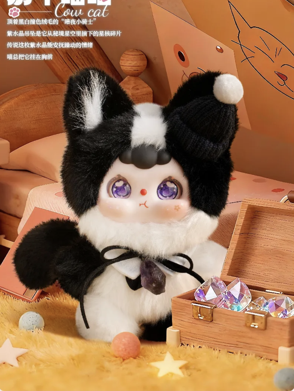 Each Plushie Cat wears a gem-stone necklace, wishing to guard a lucky and peaceful year. 7.87 inch