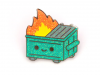 Glitter Dumpster Fire pin 1.2"" wide Hard, all glitter enamel Polished Gold plating Screenprinted details Two rubber clutch backings