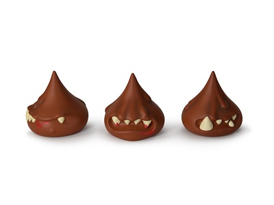 O-No Co presents Kisses.. of Death! This sweet and sentient set of deadly droplets (non-edible, mostly evil) would like nothing more than to kill you slightly quicker than their purely sugar-based counterparts. Three different 2” vinyl sculpts are wrapped in foil and sealed in a custom bag.