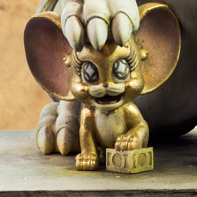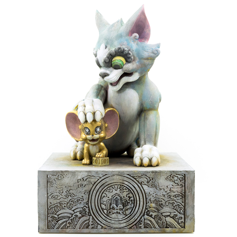 Tik Ka From East rendition of Tom and Jerry as a Foo Dog sculpture. This piece has all the hallmarks from his signature style and is a must for fans of classic cartoons like Tom and Jerry.