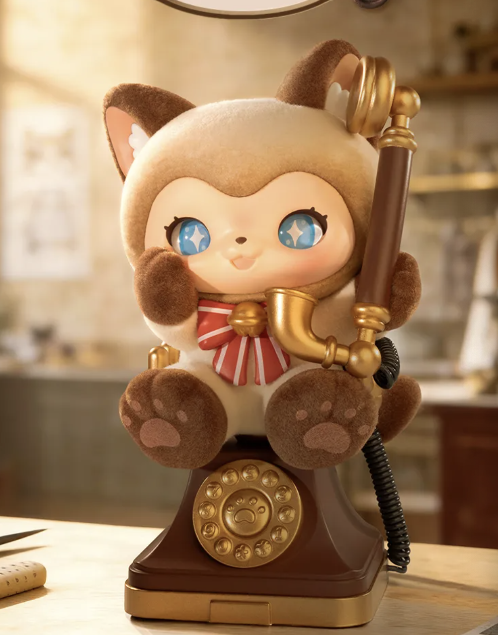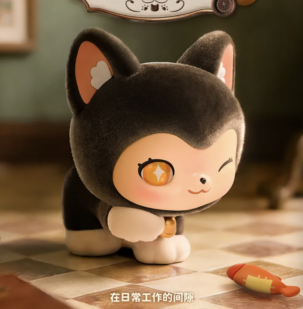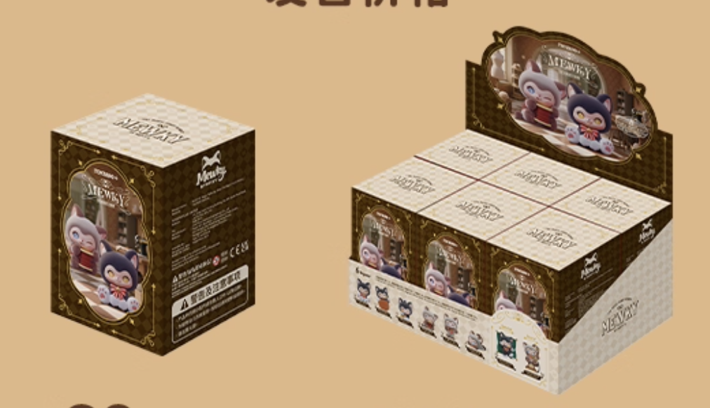 The "MOFFY'S Magic Tailor Shop" on the street corner always glows with a warm golden light. Inside lives the magical kitten MEWKY and its best friend MEOWTY, where heartwarming antics unfold every day. This is MEWKY's first blind box set, "MOFFY'S Magic Tailor Shop," documenting their heartwarming daily life at the magical tailor shop. 3.42 inch