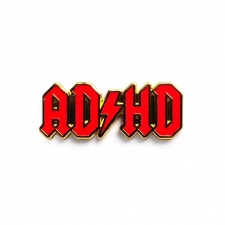ADHD Enamel Pin Red/Gold Plated (2025 Version) | Pins-Other | Yesterdays Co | 1.30" Hard Enamel Gold Plated Lapel Pin w/ black rubber backer |