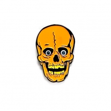 Halloween Skull - Neon Orange Enamel Pin | Pins-Other | Yesterdays Co | 1.25" Soft Enamel Black Nickel Plated Lapel Pin w/ black rubber backers |