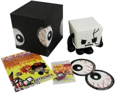 Skullbox | Designer Toy-Vinyl | ARTDENKA | Japanese artist Artdenka presents Skullbox. Standing at approx 4 inches tall and with 7 points of articulation this little guy packs a punch. Includes sticker & postcard. Edition size of 350. |